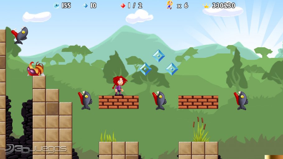 Giana Sisters: Twisted Dreams – Director’s Cut is een prachtige side scrolling platform game die uiteindelijk toch al heel wat jaren meedraait. En mocht de allereerste game nog heel erg veel weg hebben van de Super Mario Bros. game, in een dikke 25 jaar tijd is het uitgegroeid tot een game die in de verste verte niet lijkt op SMB. Het is nu een volwaardige game die de gemiddelde gamer meer dan genoeg uitdagingen geeft. Deze keer gaat het niet alleen maar om de mooie glimmende diamanten verzamelen, ook is het prachtig om te zien hoe de werelden met een druk op de knop tussen leuk en vriendelijk naar donker en bedreigend overgaat. Op zich lijkt dit niet heel erg, maar houd er rekening mee dat sommige diamanten alleen te verzamelen zijn in hun eigen wereld. Je moet dus constant nadenken wat de beste manier is om een level te doorlopen.